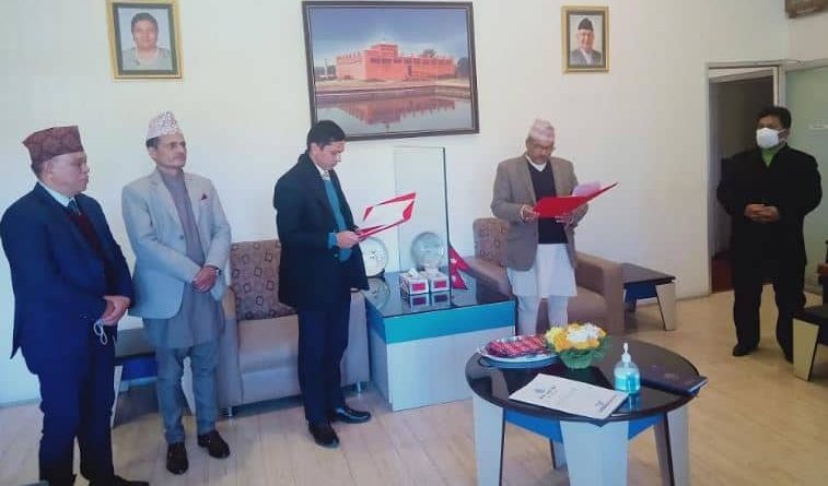 Joint Secretary of the Ministry of Finance Dhaniram Sharma has been elected as the Chairman of Rastriya Banijya Bank Limited. A meeting of the bank’s board of directors on Thursday morning nominated Sharma as the chairman. Chairman Sharma has taken oath of office and secrecy from Governor Maha Prasad Adhikari of Nepal Rastra Bank on Thursday.