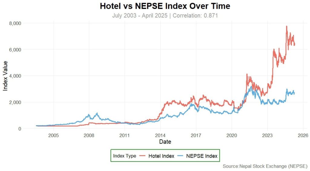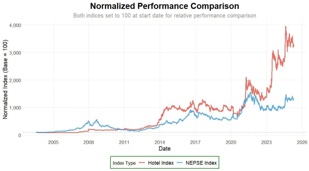 Performance Analysis of Hotel Index Vs. NEPSE Index (2003–2025)